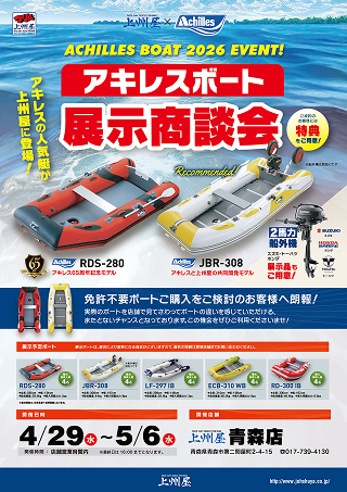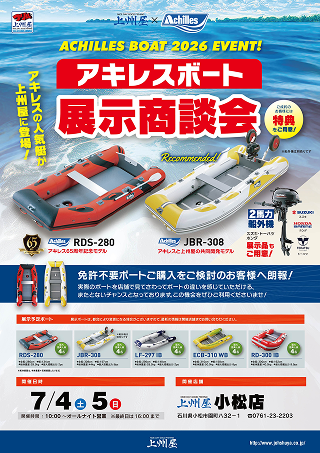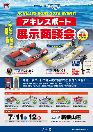 免許不要ボートご購入をご検討のお客様へ朗報!実際のボートを店舗で見てさわってボートの違いを感じていただける、またとないチャンスとなっております。この機会をぜひご利用くださいませ!