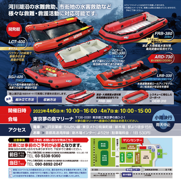 当日は、当社スタッフがアキレスボートに関しての質問等にお答えいたしますので、すでにボートをお持ちのお客様もこの機会にお気軽にご来場ください。(事前の登録は不要です)