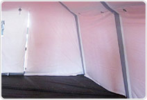 アキレスエアーテントの代名詞、アキレスエアーテントAシリーズの系譜を継ぐアキレスエアーテントAシリーズ。多くの海外メーカーがコストの安いPVCやブチルゴムなどを素材として使っているのに対し、アキレスではより信頼性の高いアキレスCSM製引布を使用しています。アキレスCSM製引布はゴムボートでも使用され、20年を超える使用にも耐えている実績があります。アキレスエアーテントAシリーズは気柱だけでなく天幕や床にもこのアキレスCSM製引布を使用し、現在考えられる中で最も耐久性を持つエアーテントを実現しています。